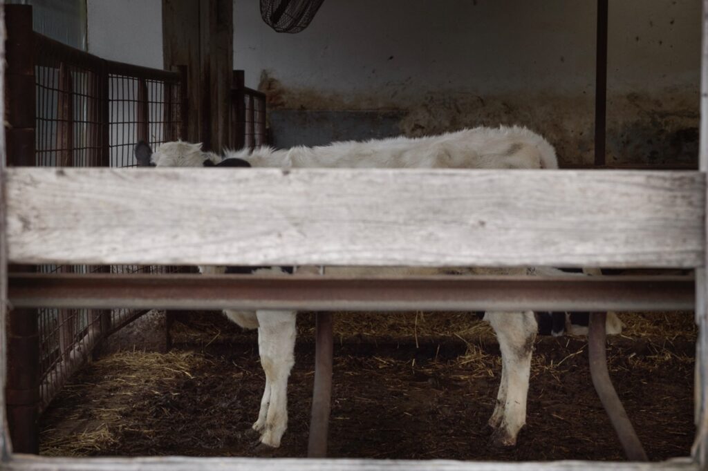Fotografický súbor zachytáva život kráv v prostredí veľkochovu – v systéme, kde sa ich existencia odohráva v nepretržitom cykle, pod fixným režimom nahrádzajúcim prirodzenú slobodu. Kravy sa tu stávajú súčasťou mechanizovaného, funkčného, ale zároveň limitujúceho procesu. V ich každodennom živote nie je miesto pre lúky ani pre prirodzenú voľnosť. Ich svet je definovaný stenami a repetitívnymi úkonmi, ktoré formujú ich existenciu.